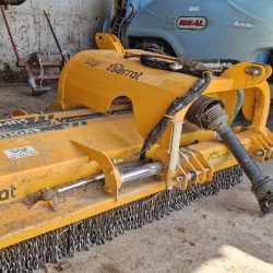 broyeur réversible, avec super déport de 75cm, rideau de chaines et vis d’andainage de l’herbe